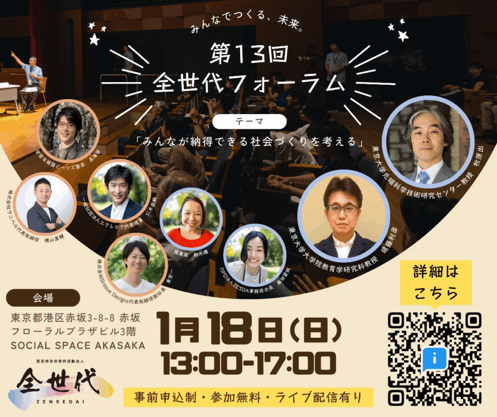 認定NPO法人「全世代」主催の「第13回全世代フォーラム」に弊社東が登壇します。